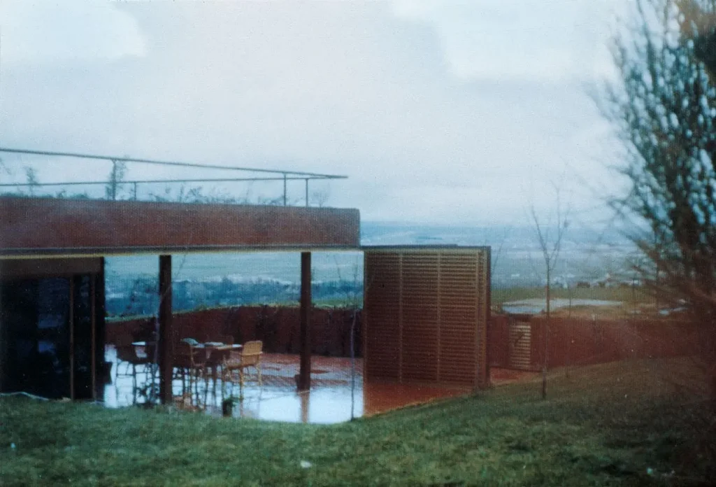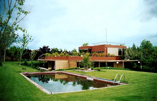 La propuesta del arquitecto es una casa radical y moderna para su contexto: España en 1.972. Ubica la vivienda en la zona predominante de la parcela para dominar con ella el espacio exterior del jardín y todo el paisaje sobre el río que discurre debajo. La casa adopta un perfil bajo y queda semienterrada en el terreno, de forma que configura así el horizonte de la parcela. Con esta operación innovadora se origina un campo terraplenado que permite introducir los espacios libres dentro de la vivienda a través de sus terrazas exteriores.