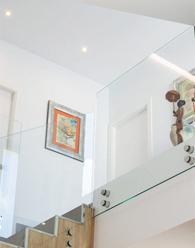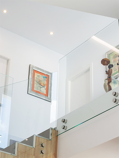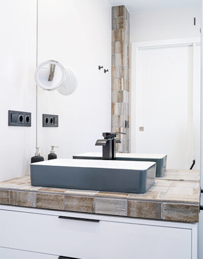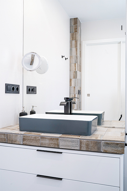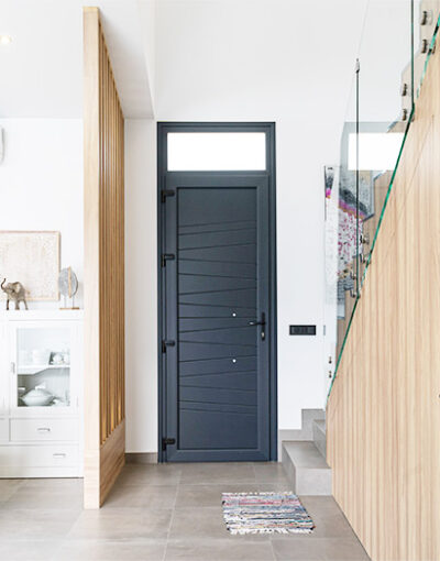 Esta pareja necesitaba una casa cómoda, práctica y fácil de utilizar. Para responder a lo que requerían se plantea un edificio dual: por un lado un volumen de dos plantas de altura que hace la fachada a esta avenida tan transcurrida. Este volumen que se orienta al sur, se cierra para evitar el excesivo sol, el calor y los ruidos del tráfico.