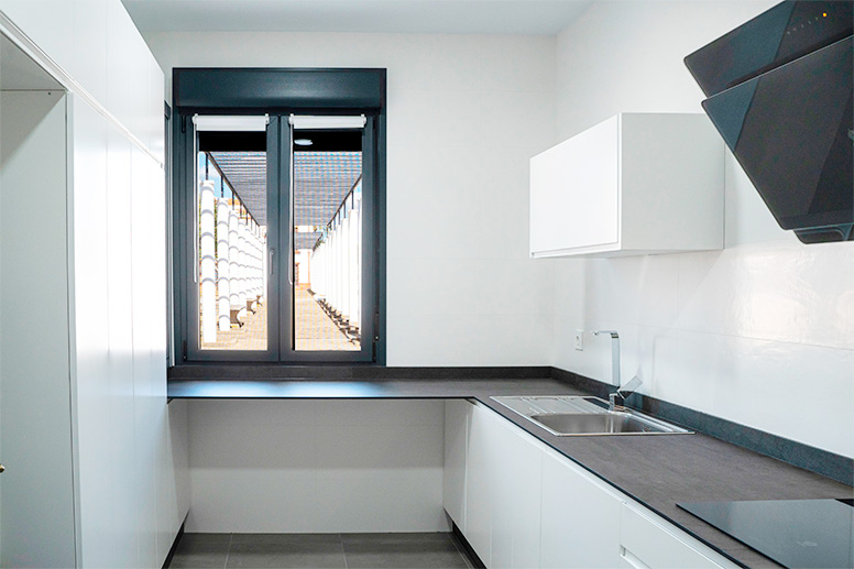 Para garantizar un buen funcionamiento térmico de la vivienda, y buscando sea confortable y agradable vivir en ella, se han estudiado cuidadosamente los aislamientos térmicos y las carpinterías. De esta forma, los patios garantizan una buena ventilación cruzada de los espacios sin renunciar al confort térmico.